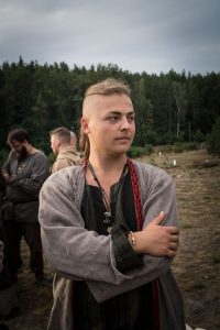 „Gdy wszedł do środka, Hakon, młody wojownik, wąs dopiero mu się sypał, twardym głosem zatrzymał przybysza, by poczekał na wezwanie kasztelana.”