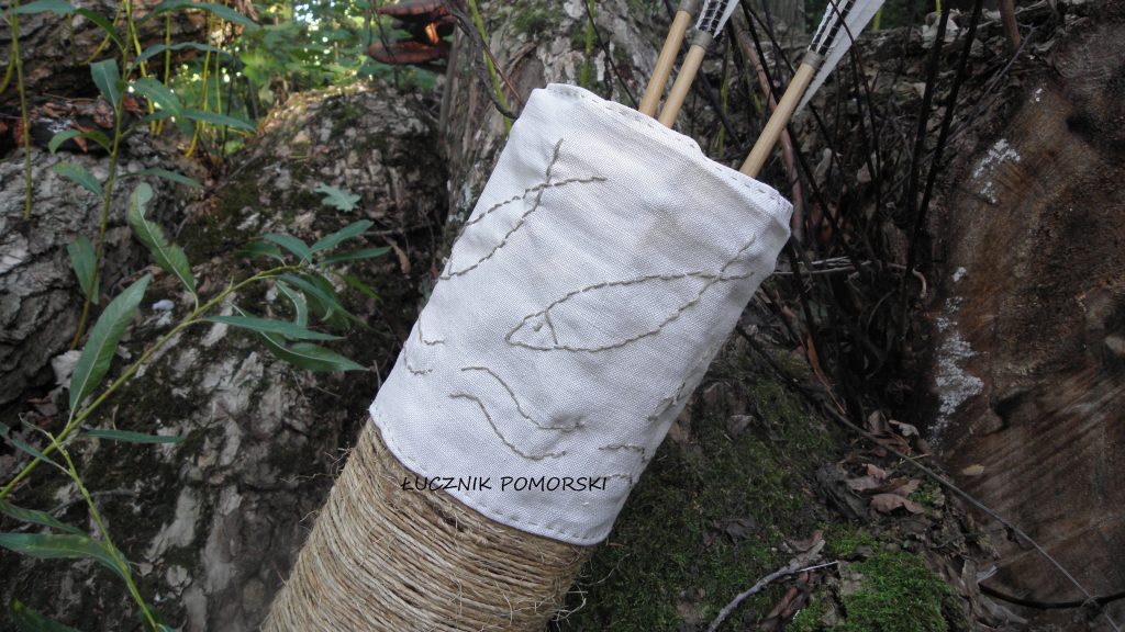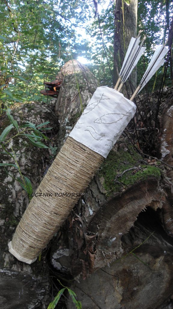Postanowiłem pójść drogą archeologii eksperymentalnej. Do wykonania takiego kołczanu postanowiłem użyć takie materiały jakie mieli nasi przodkowie. Mój słowiański kołczan postanowiłem wykonać przy użyciu drewna, materiałów lnianych, sznurków, dratwy… i sam już nie wiem. Jak to mówią pomysłowość ludzka nie zna granic.