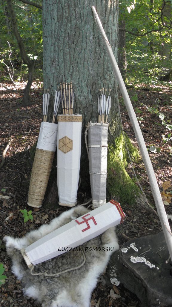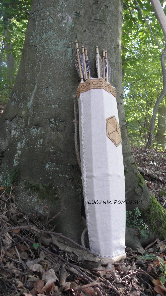 Już od dłuższego czasu nurtowało mnie jak wyglądał słowiański kołczan na strzały. Niestety nie udało mi się znaleźć żadnego wiarygodnego źródła przedstawiający jego wygląd lub opisującego z jakich został wykonanych materiałów. Dziś najczęściej stosuje się kołczany ze skóry. Wiadomo, że kołczany wschodnie były ze skóry. Ale czy na terenach dzisiejszej Polski były takie powszechnie stosowane? Łatwo odpowiedzieć, że skóra przez wieki ulega zniszczeniu-więc ciężko o takie znalezisko. Niekoniecznie to stwierdzenie zamyka nam temat. Na naszych ziemiach bowiem odnajdujemy np. dużo wczesnośredniowiecznych skórzanych butów( w ziemi i pod wodą), ale śladów kołczanu nadal niema. Z niecierpliwieniem czekam, aż taki zostanie odkryty. A może takowe skórzane kołczany nie stosowano? To przemyślenie oddam do waszej dyspozycji.