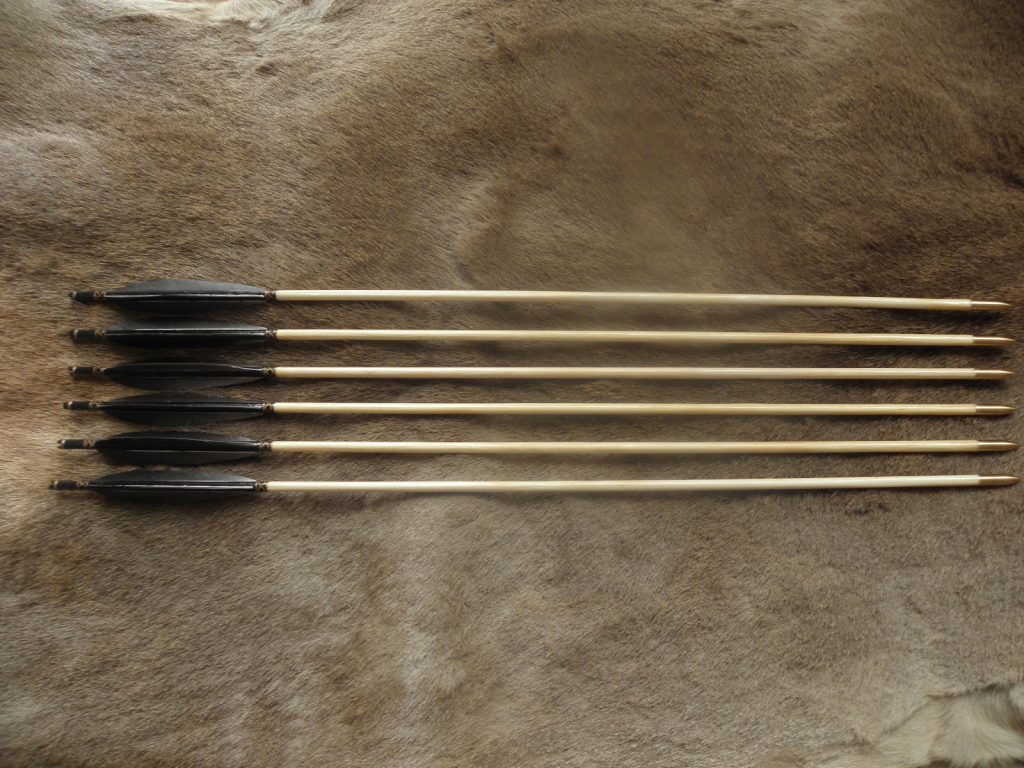 Strzały wschodnie z terenów Anatoli po Krym charakteryzowały się długimi lotkami. Promień w całości ma równą średnice około 9 mm. Wykorzystane zostały pióra z gęsi szarej. Lotki nie posiadały zabezpieczenia w postaci oplotki ani też owijki. Na zdjęciu grot współczesny tarczowy mosiężny. Zdobienie malowane farbą w kolorze złotym.
